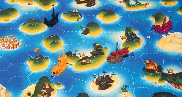 Пиратский корабль, разумеется, нацелен исключительно на грабежи. Когда он оказывается рядом с торговым судном соперника, то безнаказанно забирает себе часть груза. Помимо этого, успешная операция приносит пиратам бонус в виде двух дублонов. Но и это ещё не всё. Если пиратам удаётся надёжно спрятать награбленное на одном из островов, то они получат ещё немного монет сверху. К сожалению, трюмы пиратских корыт не такие вместительные, поэтому одновременно они способны транспортировать только один товар (кубик). Выход – быстро закапывать добычу, и снова на дело.