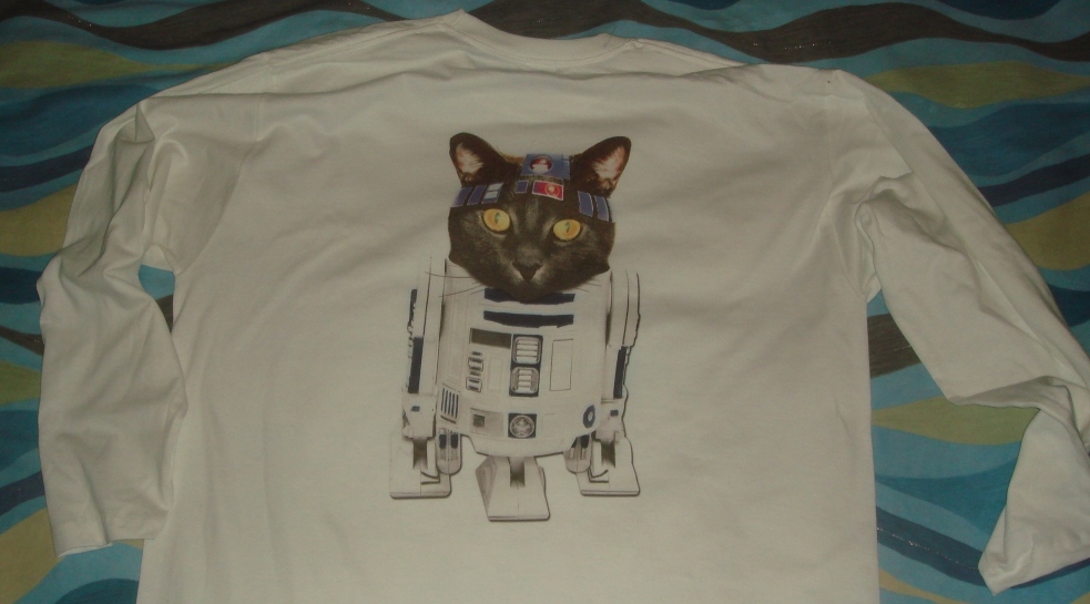 На этот раз в моём настольном гардеробе случилось пополнение в виде майки повстанца. Катя подумала, раз я частенько посещаю турниры по Star Wars: X-Wing, то мне обязательно нужна соответствующая одёжка, и обязательно с талисманом. В роли талисмана выступил наш котяра. Изображение на спине… эмм… философское что ли. Сперва долго смеялся, а потом взгрустнул, ведь таким сэр Ричард радовал бы нас вечно 🙂