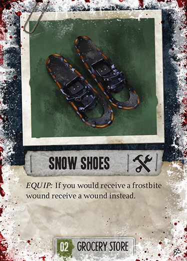 Наиболее жёсткая механика, которая присутствует в игре, связана со специальным кубиком воздействия (Exposure Die). Его необходимо бросать при перемещении из одной локации в другую. Кубик 12-гранный и несёт он лишь волнение и разочарование. Некоторые его грани пусты, некоторые имеют значки ранений, а одна грань имеет символ… смерти. Да. Смерти. В этой игре вы можете умереть по велению кубика. Хотя тематически это легко объясняется (мол, герой заблудился или его загрызли зомби), но, скорей всего, у этого правила будет много ненавистников. С другой стороны, время партии тут небольшое (40-60 минут), да и сюжет как бы намекает. Вспомните классические зомби-фильмы, где герои частенько погибают во время вылазок от рук мертвецов или других группировок. Мир Dead of Winter ещё опасней, кругом холод и густая пелена снега, и от этого шансов вернуться становится ещё меньше, а именно 1 к 12. К счастью, дизайнеры предвидели лучи недовольства и добавили правило, по которому глупой смерти можно избежать, скинув карту с топливом – тогда бросать кубик вам не придётся вообще. Персонаж как бы использует для передвижения более надёжный способ: автомобиль, мотоцикл или что-то ещё. Проблемка в том, что карт с топливом не так уж и много.