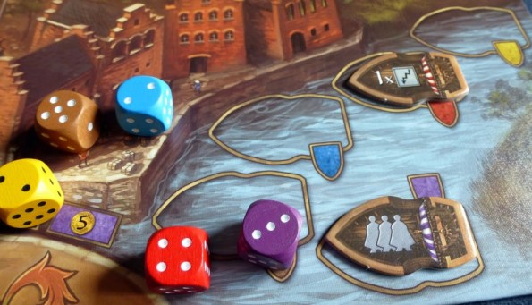 В фазе броска кубиков после раздачи жетонов угрозы и продвижения по треку влияния, разыгрывается новый шаг “прибытие лодок”. За каждый кубик с тройкой или четвёркой на причал помещается жетон лодки соответствующего цвета. С этого момента действия, указанные на причаливших лодках можно будет использовать в дополнение к действию “постройка канала”.