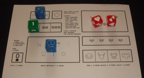 Dungeon Dice – это ещё один “подземельный” push your luck. Нечто подобное мы уже видели в Dungeon Roll. То, что выделяет игру, так это огромное количество кубов, относительно быстрые ходы и возможность помогать/пакостить соперникам. Цель всего этого кубического буйства – первым набрать 4 очка славы. Очки присуждаются за убийство монстров определённых уровней, а также за добытые артефакты и прокачку своего героя до шестого уровня.