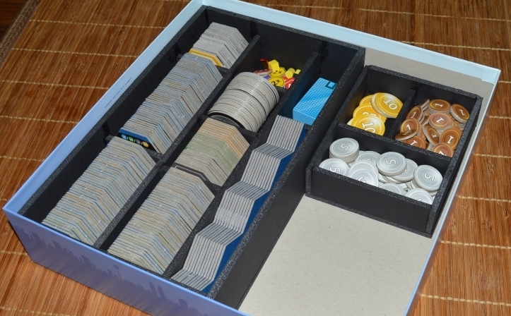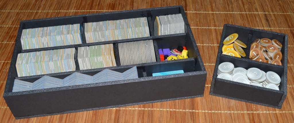 Так и задумывалось, для монеток/ресурсов/карт, которые используются по ходу игры, делать отдельные коробочки. Иначе теряется смысл органайзера.
