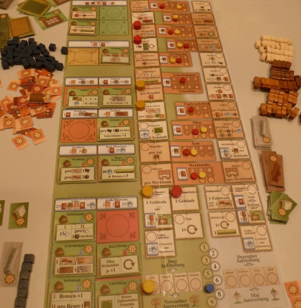 Судя по описанию, перед нами нагромождённая нюансами Agricola/Caverna с полностью открытой информацией (от партии к партии меняется лишь набор доступных зданий) и некоторыми изменениями (к примеру, стоить комнаты и улучшать жилища теперь не нужно, зато появились болота и повозки). Этакий детально проработанный сельскохозяйственный симулятор для опытных игроков, которые не испугаются обилия доступных действий и вариантов по заработку победных очков.