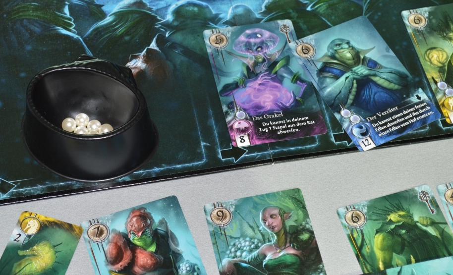 Abyss. Как раз в тему о красоте. Казалось бы, простая игра на сбор комбинаций, но стильное оформление коробки (а их 5 разных вариантов), великолепный арт и жемчужинки в специальных тарах (без которых пришлось бы туго, так как они постоянно бы укатывались под стол) делают своё дело.