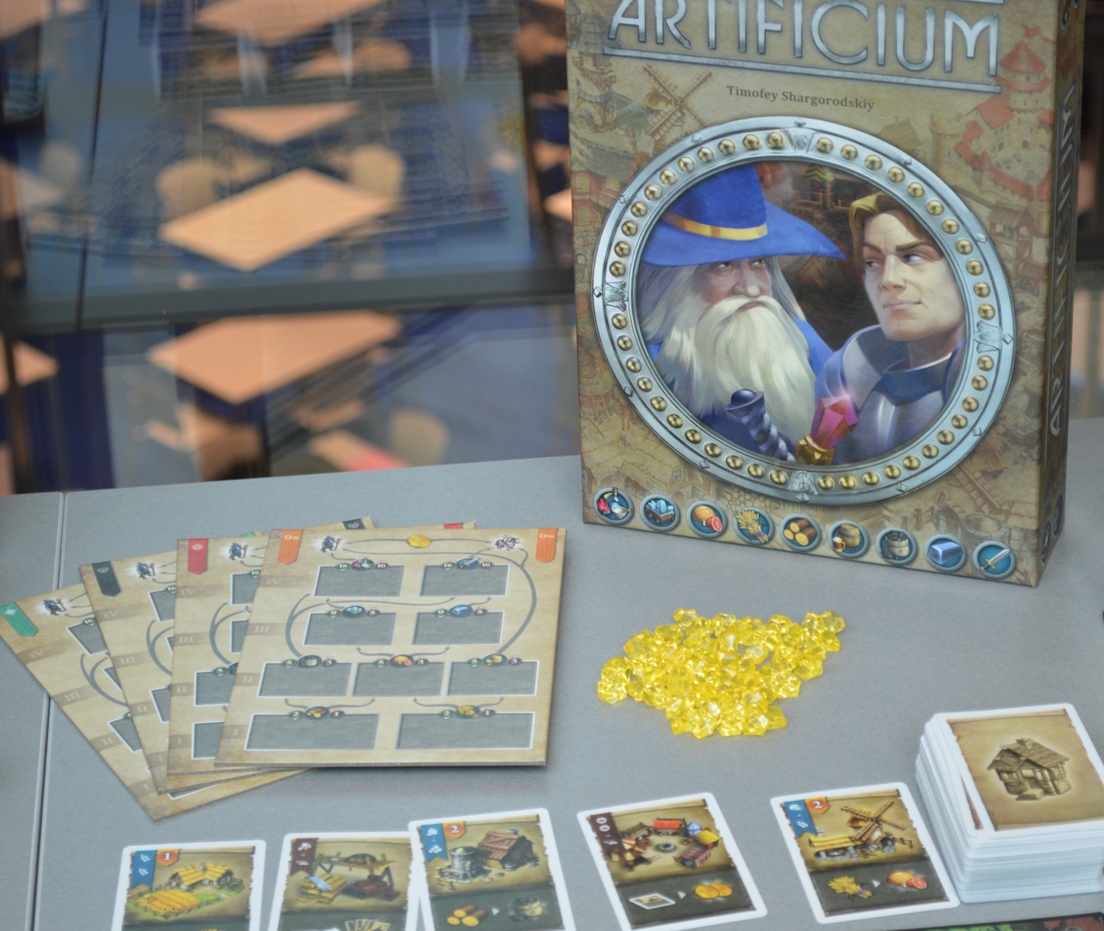 Artificium. Удалось пообщаться с Александром Пешковым из Стиля жизни. У компании большие планы насчёт локализаций, а одна из первых ласточек – Суши Го!, популярная ныне в Америке простая игрушка на драфт. Александр мне ещё подробно рассказал о правилах Артифициума.