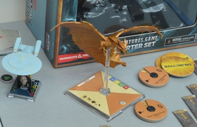 Dungeons & Dragons: Attack Wing. Жуть какая-то. Драконы ещё куда ни шло (хоть и напоминают детские резиновые игрушки), но уровень убогости и оформления карт и жетонов зашкаливает.