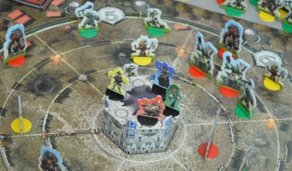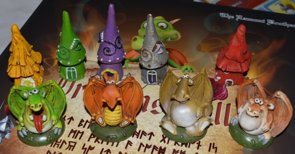 Dragonscroll. Братья Lamont из Fragor Games, славящиеся тем, что каждый год к Эссену они делают ровно по одной игре, тираж которой расходится молниеносно уже по предзаказам, снова отличились – достаточно взглянуть на фигурки драконов и зданий их нового детища Dragonscroll. Помимо глиняных фигурок, в комплект ещё входит интересная конструкция fireball flaming tower of death, которая выступает в роли рандомайзера при запуске деревянных огненных шаров.