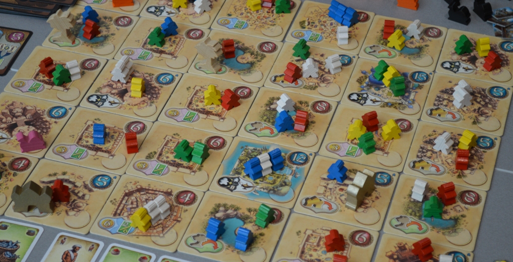Рада, что в Five Tribes сыграли быстро, наверное, просто у меня муж такой великий стратег, что только к пятой партии чуть быстрее думать-играть начал, хотя я уже ввела песочные часы 🙂 Игра очень нравится и выглядит просто великолепно. Кстати, не играли пока вчетвером, вдвоём у каждого не один ход, а может быть даже два хода подряд, и тут ещё куча стратегии накладывается, мне нравится.