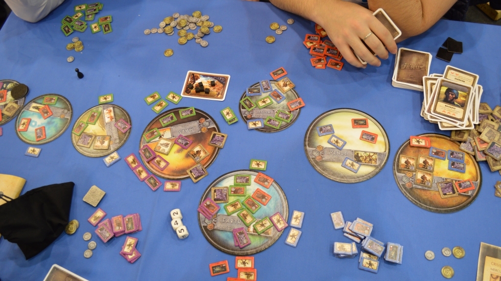 По сути, это карточная игра на построение эффективных цепочек и конвертацию одних ресурсов в другие, более ценные. Стенд был постоянно забит, а потом на нём и вовсе появилась надпись “sold out”. Правда, первые отзывы говорят о том, что, несмотря на неплохую идею с цепочками, рандомный приход карт убивает всё планирование.