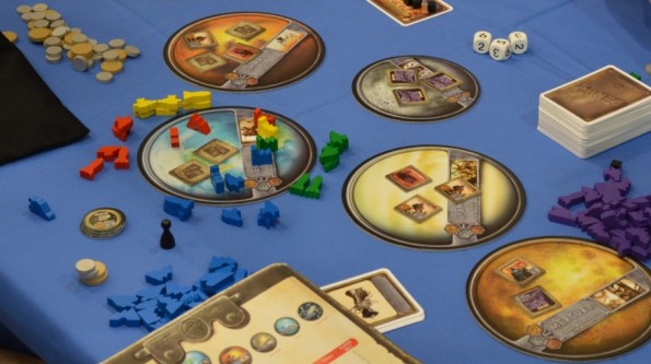 Massilia. Из двух игр от Quined Games (не путать с Queen) эта интересовала больше (кубики же), но стол с другой их новинкой Golden Ages освободился быстрей.