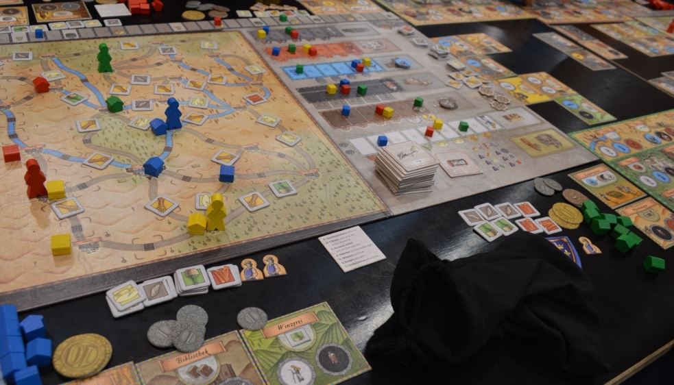 Времени на осмотр достопримечательностей особо не было. Вставали в 7-7:30, быстренько завтракали, заезжали за друзьями и отправлялись на выставку, где находились от звонка до звонка. Вечером – к Николаусу, пару партий в новинки, и спать. И надо сказать даже при таком раскладе четыре дня оказалось мало, чтобы “пощупать” всё, что хотелось. Мне, кстати, ещё повезло, так как с press pass-ом я мог заходить на час раньше и спокойно занимать место на любую игру. И только благодаря этому мне удалось попробовать популярные настолки, пользующиеся спросом у публики.