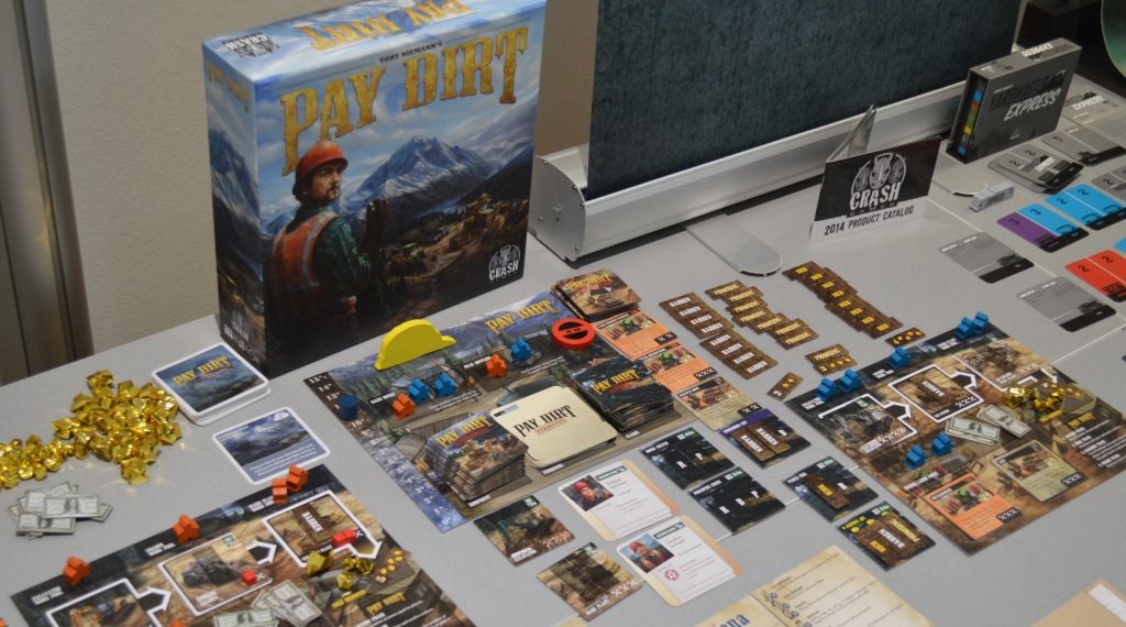 Pay Dirt. От автора Alien Frontiers. Игра посвящена добыче золота. У каждого свой планшет со схематичным конвейером, группой рабочих, техникой. Каждый раунд на аукционе можно получить новое улучшенное оборудование, а также нанимать различных помощников. Загвоздка в том, что всё это делается лишь для того, чтобы просто перемещать тайлы с золотом по конвейеру, а все вышеописанные прибамбасы лишь помогают ускорить этот процесс. Boring.