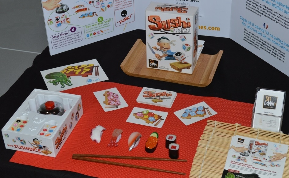 Sushi Dice. Тема суши только набирает обороты. Вот вам, пожалуйста, игра на скоростное набрасывание кубиков с целью выполнить карточки заданий, на которых нарисованы различные блюда из морепродуктов. Я остановился на Sushi Go!, тоже про готовку суши, только на драфт.