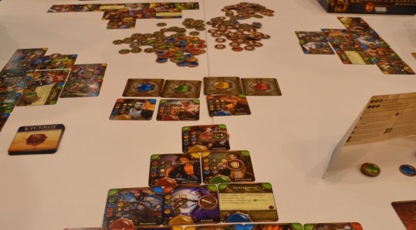 Fields of Arle. Первоначальный интерес к этой дуэльной Агриколе к выставке как-то совсем сошёл на нет. Видимо, мне надоело работать в играх по 2-3 часа, и хочется просто играть. На сельскохозяйственную тематику меня куда больше заинтриговала La Granja, тираж которой разошёлся ещё за пару месяцев до Эссена. Начитавшись отзывов, я понял, что La Granja чудо, как хороша и вариативна. Вдобавок, в ней присутствует моя любимая механика, где карты можно использовать разными способами. А тут ещё они так здорово подкладываются под планшеты. Spielworxx пообещали, что репринт стоит ждать в следующем году.