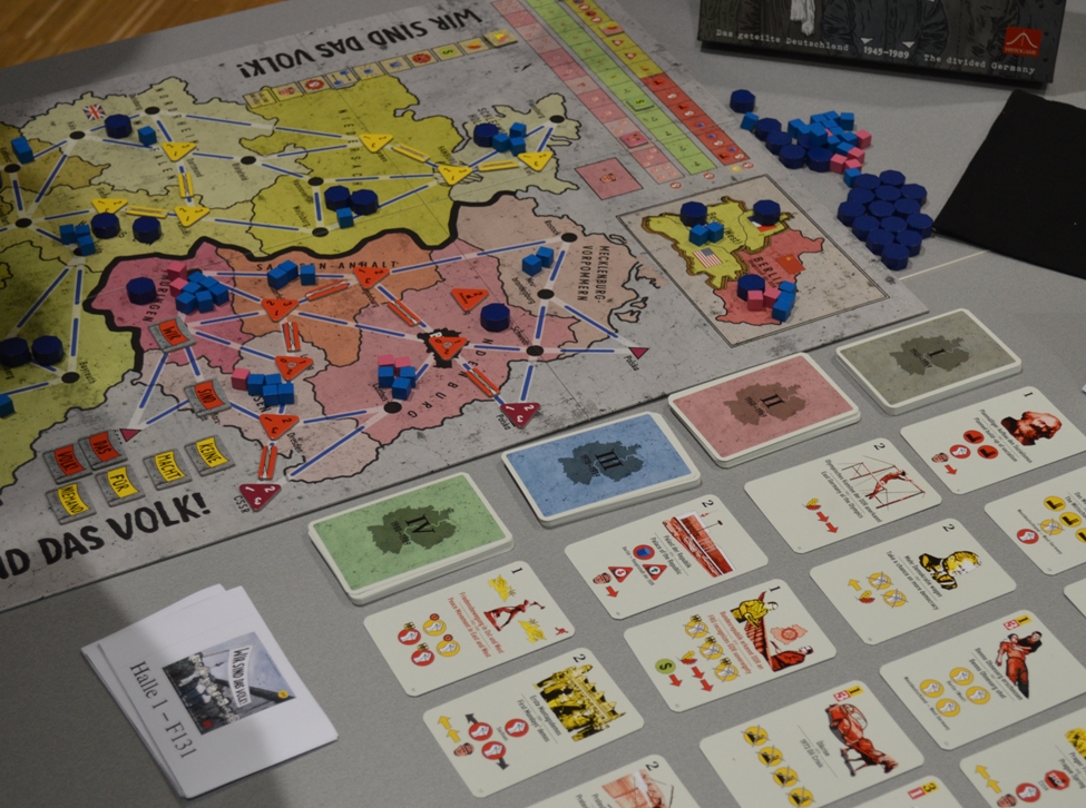 Wir sind das Volk!. Захотелось чего-то серьёзного и на двоих, выбор пал на Wir sind das Volk!, которая всплыла буквально накануне выставки. Стратегия для двух игроков от Histogame на карточном движке а-ля Twilight Struggle. Посвящена периоду, когда после Второй Мировой Германия разделилась на две части, Восточную и Западную, и началось противостояние систем.