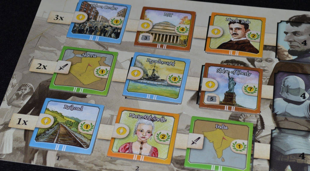 Четыре жалких раунда подразумевают, что каждая эпоха пронесётся молниеносно и оставит после себя лишь след из набора тайлов развития и одного события, за выполнение условий которого можно заработать дополнительные очки.
