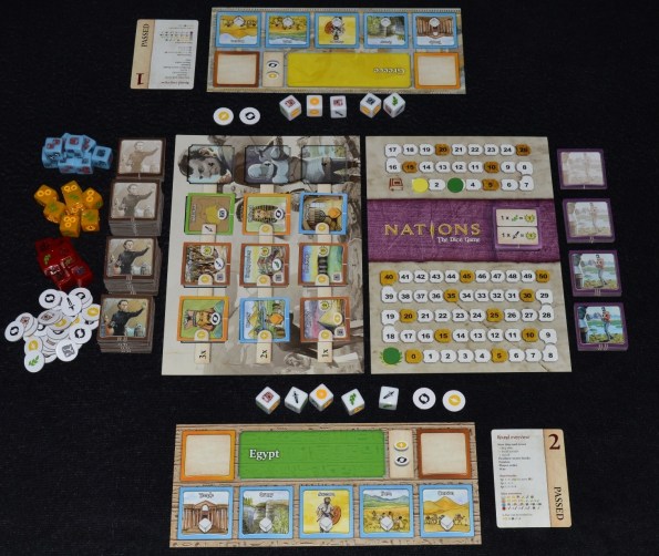 Начинаем потихоньку разгребать новинки, читать правила и, разумеется, играть – уже опробовали примерно половину привезённого. Трижды успели погонять в Nations: The Dice Game, впечатлениями от которой спешу поделиться.