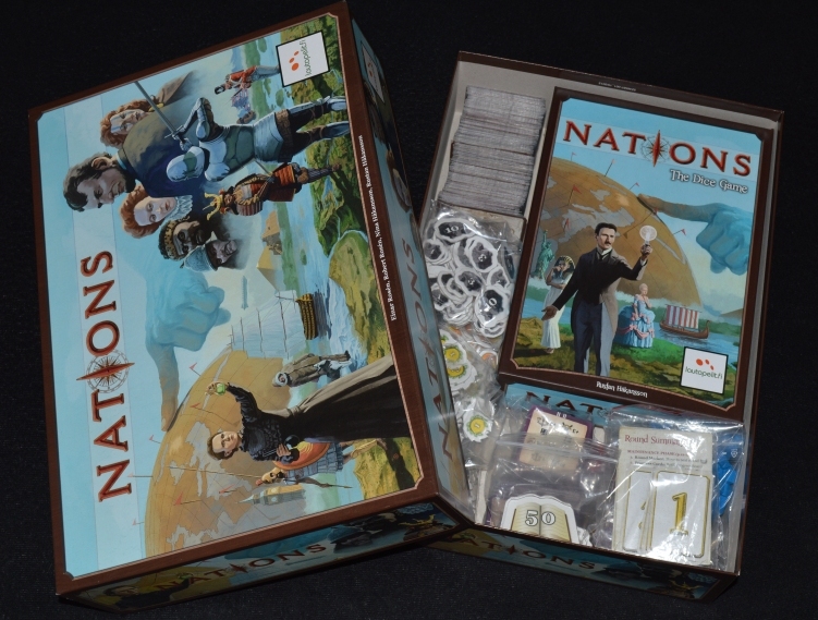 Не секрет, что большие Нации – одна из моих любимых настолок. Не новость и то, что мне очень нравятся игры на кубиках. А если кубы в них ещё и кастомные (не простые шестигранники), то вообще, замечательно. Именно по этим двум причинам пройти мимо Nations: The Dice Game я просто не мог.