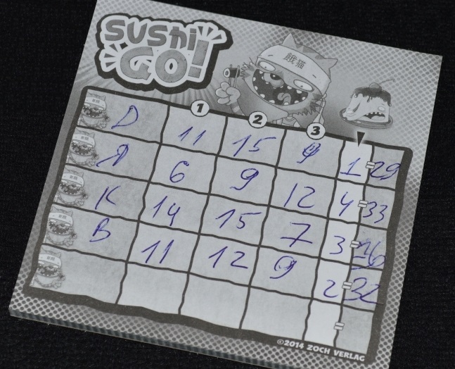 Роллы подсчитываются в конце каждого раунда. Оценивается их общее количество у каждого игрока. Очками вознаграждается только первое и второе место. Лидер получает 6 очков, ближайший преследователь – 3.