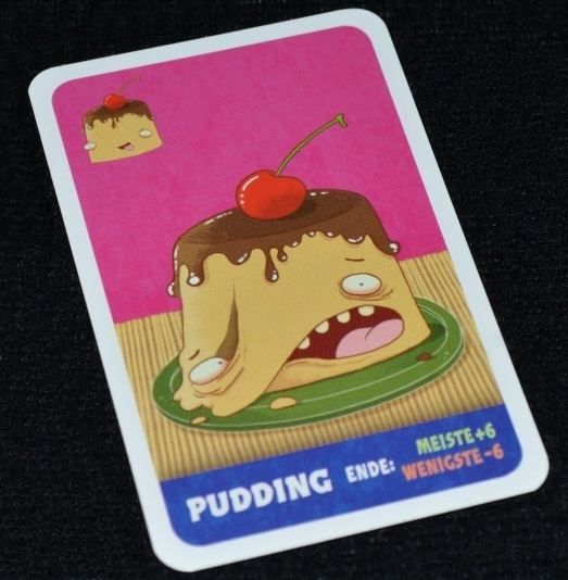 Пудинг приносит очки в самом конце игры. Это единственная карта, которая не сбрасывается в конце раунда, то есть пудинги копятся на протяжении всей партии. Собравший наибольшее количество пудингов, получает 6 очков, а тот, у кого пудингов оказалось меньше всех, теряет 6 очков.
