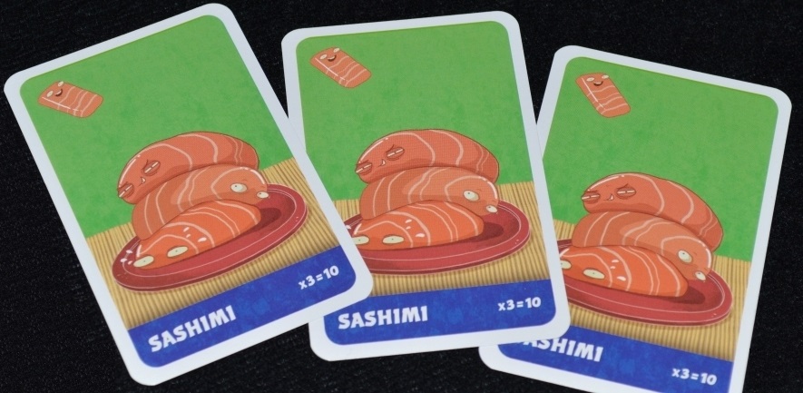 Сасими окупаются, если удаётся выложить сет из трёх карт. Тогда игрок получает целых 10 очков. Одна или две карты опять же не принесут ничего.