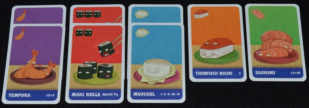 Цель всех этих манипуляций в Sushi Go – набрать как можно больше очков на сетах из блюд. Хоть игра и простенькая, сеты тут не совсем банальные (чем она, в принципе, мне и понравилась) и отличаются не только цветом и картинкой, но и тем, что у каждого типа карт свои особые правила начисления победных очков. Собственно, по ним и пробежимся.