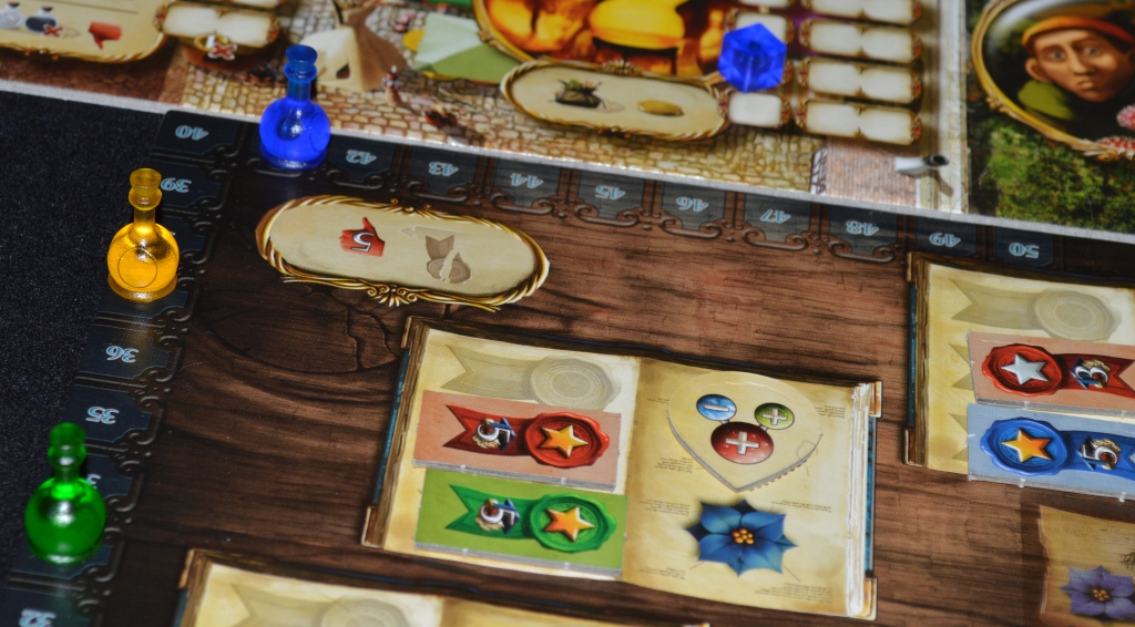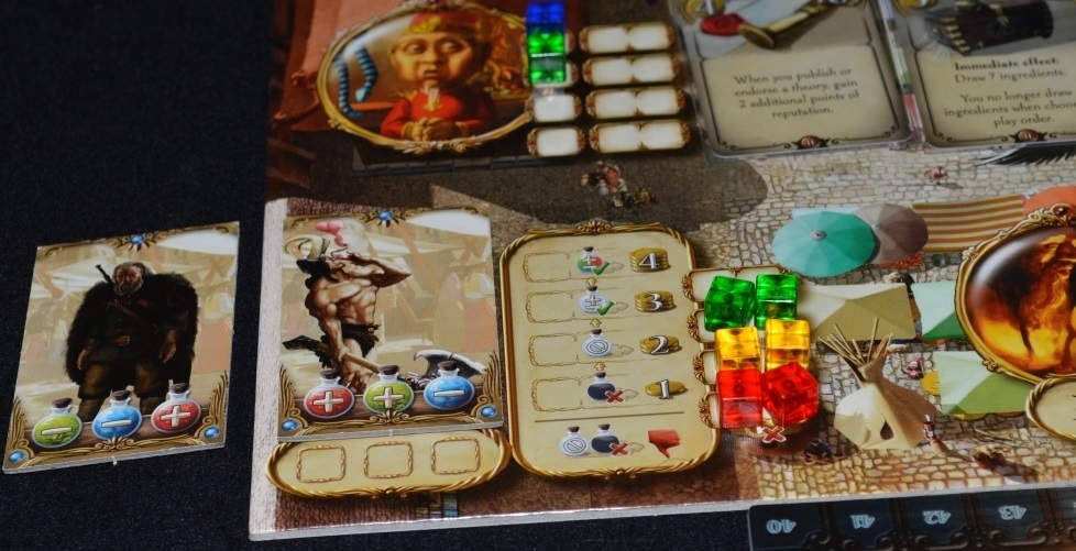Кроме того, действия, свойства локаций и эффекты карточек, обыгранные с юмором, а также великолепные иллюстрации добавляют атмосферы. Смешивая корешки, публикуя теории, торгуясь с путниками, ты реально ощущаешь себя каким-то сумасшедшим учёным. В-третьих, за всеми этими инновациями скрывается действительно хорошее евро, которое не перестаёт быть интересным даже после того, как ты познал секреты приготовления зелий. Да, с опытом вся это фишка оборачивается сухим расчётом, но зато ты можешь полностью сконцентрироваться на источниках победных очков, попробовать запутать соперников своими псевдо-теориями, а также использовать действия и результаты других учёных себе во благо.