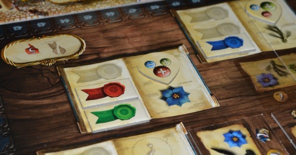 Одна из свежих новинок, отличившихся в этом плане – Alchemists от Czech Games Edition. Для партии потребуется программка, которая случайным образом задаст формулы ингредиентам и поможет в их вычислении.