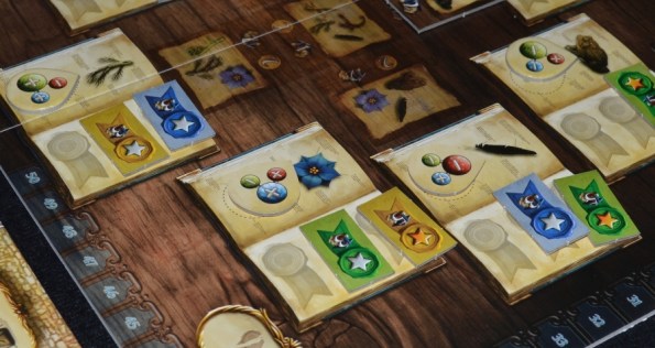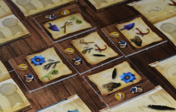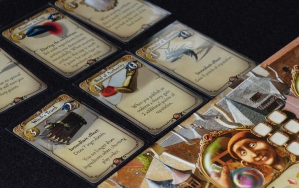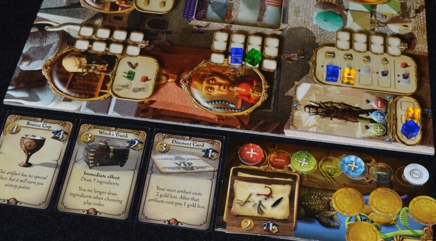 Повторюсь, дедукция – это лишь одна из механик. Тут не следует ждать от каждой партии каких-то новых и загадочных расследований. Метод вычисления всегда один и тот же. Нужно по возможности набирать одинаковые ингредиенты и смешивать их с другими, а затем запастись наборами с уже известным результатом для продажи зелий путникам и финальной выставки.