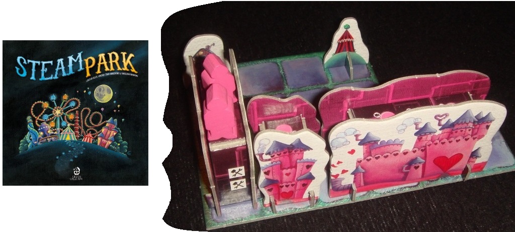 Думал, что будет нечто совсем детское, а получилась довольно весёлая настолка для всех возрастов, правда, с притянутой за уши темой стимпанка и странным мрачным оформлением. Карты целей делают Steam Park реиграбельной, простейшая экономическая модель “посетители-деньги-мусор” – не глупой, трёхмерные модели аттракционов – внешне привлекательной, а механика бросков на скорость – азартной и динамичной.