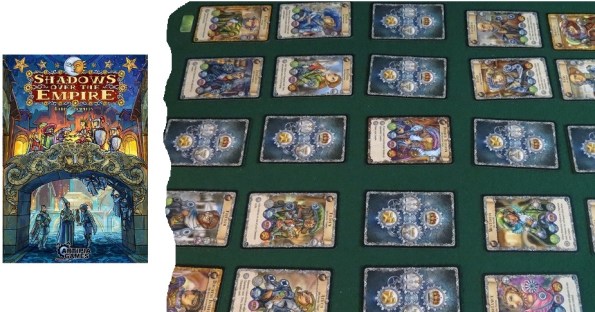 После Among the Stars поверил ребятам из Греции и поддержал их новинку Shadows over Empire на Кикстартере. Особо не разбирался, просто понравились большие красивые карточки размером, как в Диксите. Да и цена была более чем приемлемой – 23 $ (+ всякие промки) при самовывозе из Эссена. Там и забрал.