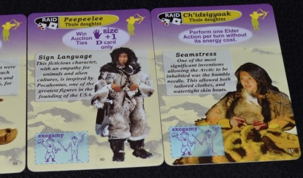 Именно этим мне игра и понравилась. Автор не пытался сгладить углы, что-то упростить, а просто дал игрокам полную свободу и снабдил всё это отсылками к реальным событиям, позволяющими проследить логику любого действия. Да, чтобы разобраться со всем этим, пришлось попотеть, но результат того стоил. Соревнование за очки получается напряжённым, и ты сам не замечаешь, как попутно вживаешься в роль древних охотников, на глазах которых Гренландия постепенно затягивается покрывалом из непроходимых льдов. Да и все эти постоянные стычки добавляют веселья. У нас всё время возникали всякие шуточки, особенно, по поводу женитьбы. Не удалось кинуть успех при набеге на карту дочери, значит, как увидел – передумал!