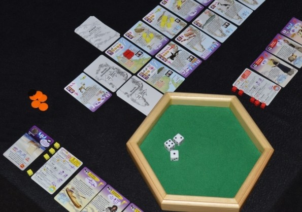 Некоторые карты можно забрать, выбросив одинаковые значения на двух, трёх или четырёх кубах, причём, это необязательно должны быть единицы или двойки. Карты с символами изобретений и одомашненных зверей сперва идут в руку (как я уже говорил, потом их можно выложить за свойство одного из старейшин), а с победными очками – перемещаются в зону игрока.