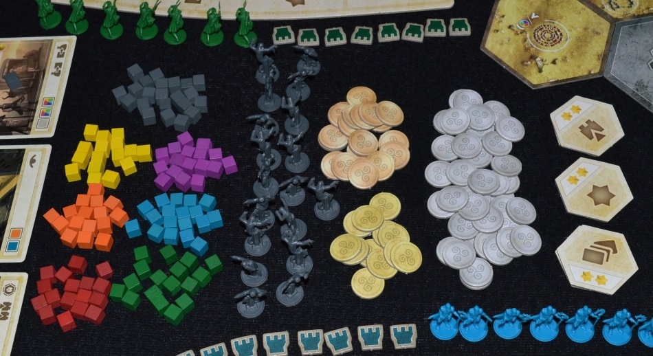 Кроме того, каждая покупка более мощного действия сопровождается засорением мешка серым кубиком, что опять-таки имитирует колодостроение (например, Доминион с его картами победных очков, которые по ходу партии бесполезны). С другой стороны, некоторые технологии позволяют пристраивать и серые кубы. Но всё равно, сильно увлекаться картами не стоит, вряд ли три серых куба – это то, что вы хотели бы вытащить на предстоящий ход.