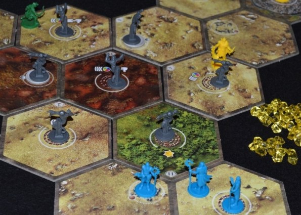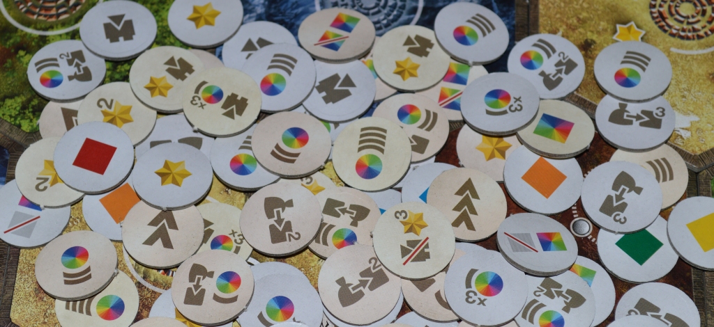 Жетончики, кстати, немного исправляют ситуацию с урезанной исследовательской частью. Дело в том, что для вскрытия окрестных тайлов достаточно к ним просто подойти, отчего туман войны рассеивается достаточно быстро. А вот жетоны добавляют неизвестности, причём приятной – плохого в них не попадается.