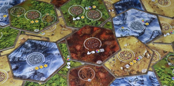 Итак, каждый игрок берёт под своё руководство одну из шести рас. Для первых партий рекомендуется играть идентичными цивилизациями, без расовых отличий. Потом уже можно добавить стартовые домашние гексы с уникальными эффектами и тайлы свойств.