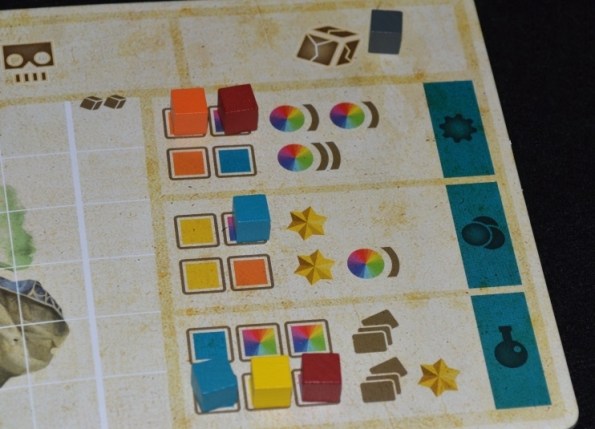 В свой ход игрок распределяет кубы согласно цвету по слотам на планшете и картах технологий. При заполнении необходимого числа (1-3 слота) активируется соответствующий эффект.