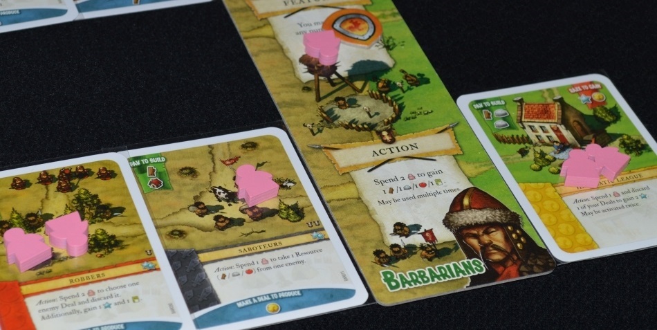 В Imperial Settlers было противостояние Римляне VS Варвары. Играли с дополнением. Получилась настоящая бойня, как по содержанию, так и по результату. Новые карты быстро позволили наладить добычу мечей обеим фракциям, что сделало строительство обычных локаций невероятно нервным. Фракционные здания добавили пущего напряжения. Варвары воровали у соперника камень, тайком таскали золотишко и разрушили единственной соглашение. Римляне в долгу не остались, в ответ они стёрли с лица земли два чужих здания, не оставив от них даже руин. И только открытое производство немного разбавило постоянные стычки дружественными походами за ресурсами.