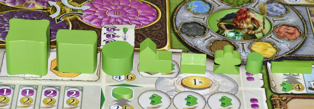 Слабых мест я не увидел. Может, для полного счастья хотелось бы больше жетонов благословения (на партию набор всегда один и тот же). Цели на раунд тоже угнетают однотипностью, но это понятно, на них указаны самые востребованные действия, чтобы все могли заработать дополнительные очки.