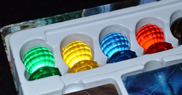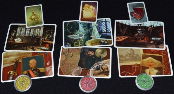 Напоследок о компонентах. Иллюстрации великолепны. Жаль, что персонажи немного выбиваются из общего стиля. Качество достойное. Порадовало наличие органайзера, “лён” на картах (хотя протекторы желательны – страдают края) и магические шары. По исполнению шары не идеальны, но придают атмосферы, да и оперировать ими удобно. Что напрашивается, так это держатели карт загаданных комплектов, такие как, например, в Мемуарах. Призрака это избавило бы от ненужной возни.