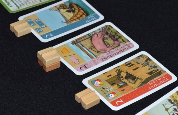 Заплатив указанные на карте эпохи ресурсы (беря во внимание модификатор с карты события), игрок берёт фишку и кладёт её над одной из своих карточек изобретений. Цвет карты должен совпадать с одним из сброшенных на это дело ресурсов. Одна фишка считается поселением, вторая превращает поселение в город (две – это максимум). Для чего нужны фишки? Только они позволяют зачесть очки за карты изобретений.