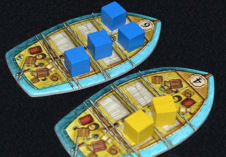 Торговец и капитан – роли с подвохом. Торговец позволяет продать по товару в так называемый торговый дом, принося тому, кто его выбрал, дополнительную монету. Подвох в том, что продавать одинаковые товары нельзя. Капитан разрешает сдать товары за очки, один к одному. Тот, кто его выбрал, получает за отгрузку дополнительное очко. Тут подвох ещё знатней. Во-первых, действие обязательное, то есть отказаться от погрузки и сохранить товары нельзя. Во-вторых, на каждый из судов можно погрузить только один тип товаров, то есть, кто успел, того и тапки. И, в-третьих, из товаров, оставшихся не у дел, игрок может сохранить лишь один. Очень злое действие.