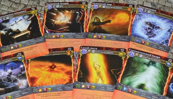 Получается, что игрок может без проблем включить в свой арсенал любую карту. Совладать с ограничениями, вероятно, будет сложней с приобретением дополнений, так как появится больше вкусных и дорогих карточек. Но я не хочу сказать, что в базе выбор скудный, карт тут хватает даже на то, чтобы собрать более-менее приличные “колоды” одновременно для всех четырёх магов, идущих в наборе.
