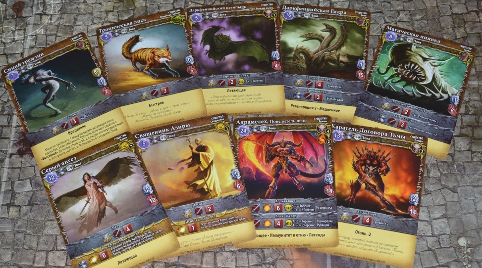 Как и Summoner Wars, ВМ напоминает тактическую игру с миниатюрами, где в роли миниатюр выступают обычные карты. Плюса два: 1) при одинаковом наполнении коробка выходит в разы дешевле; 2) значительно упрощается отслеживание различных эффектов и параметров. Минус очевиден – карточки на поле радуют глаз гораздо меньше, чем фигурки.