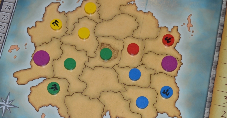 Борьба за территории происходит на мини-карте. Игроки начинают по краям и пытаются отхватить как можно больше участков, тратя на это очки военной мощи. Расчёт требуемой силы идёт от стартовой фишки. Допустим, чтобы поместить диск на свободный соседний участок, придётся заплатить одно очко, а чтобы уничтожить соперника на расстоянии трёх участков – четыре.