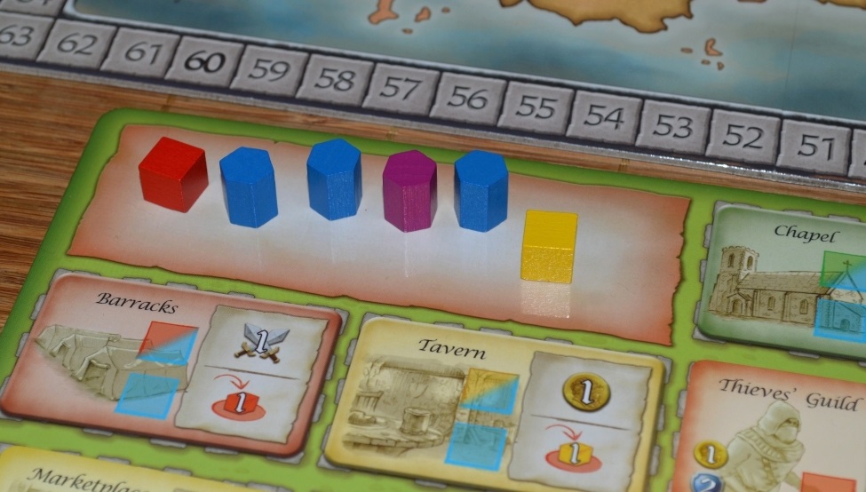 Да, ещё убер-сильный Трактир – благодаря ему игрок может в конце каждого раунда класть использованные фишки обратно в мешок перед вытягиванием новых. Получается, что мешок никогда не опустошается, и его владелец не получает штрафных фиолетовых цилиндров.