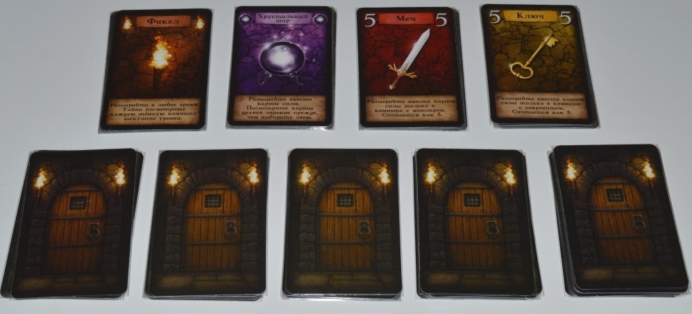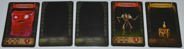 Итак, берём первую стопку комнат, открываем двери, выкладываем карточки в ряд, и в бой!