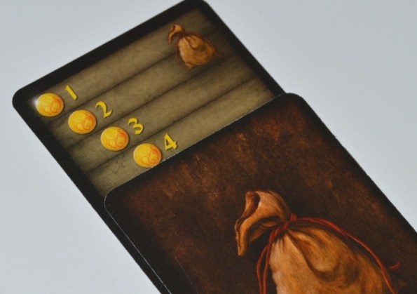 Куда приятней карты с сокровищами. На них нарисовано один или два сундука с золотом. Распил сокровищ осуществляется также с помощью карт силы. Сыгравший самую высокую цифру, забирает монетки из большого сундука, следующий за ним – из маленького. Подвох в том, что если претендентов на какой-либо сундук оказывается несколько, то награда делится на всех с округлением вниз. Выходит, что хоть большие сундуки и вкуснее, но занимать единолично вторые места зачастую бывает выгодней.