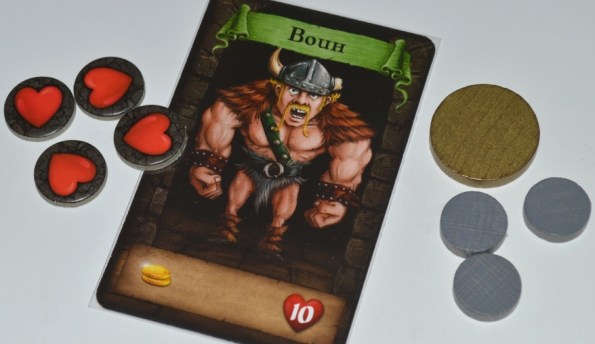 Тем более, что это возможно практически без дополнительных затрат. Судите сами, в коробке 50 жетонов по единичке. Монстры наносят 1, 2 или 3 ранения. Добавляем двойки-тройки, а остальные жетоны пускаем на золотишко с таким же номиналом. Элементарно же. Короче, обидно. Мы сразу отказались от карт и использовали деревянные монеты, оставшиеся от первого издания 7 Чудес.