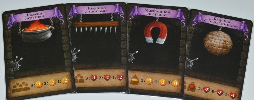 Последний и самый противный тип карт – это ловушки. Они заставляют терять жизни и монетки и действуют либо на всех сразу, либо только на самого здорового или богатого. Хочешь нагадить всем – играй единичку, хочешь притормозить лидера – трать высокую карту.